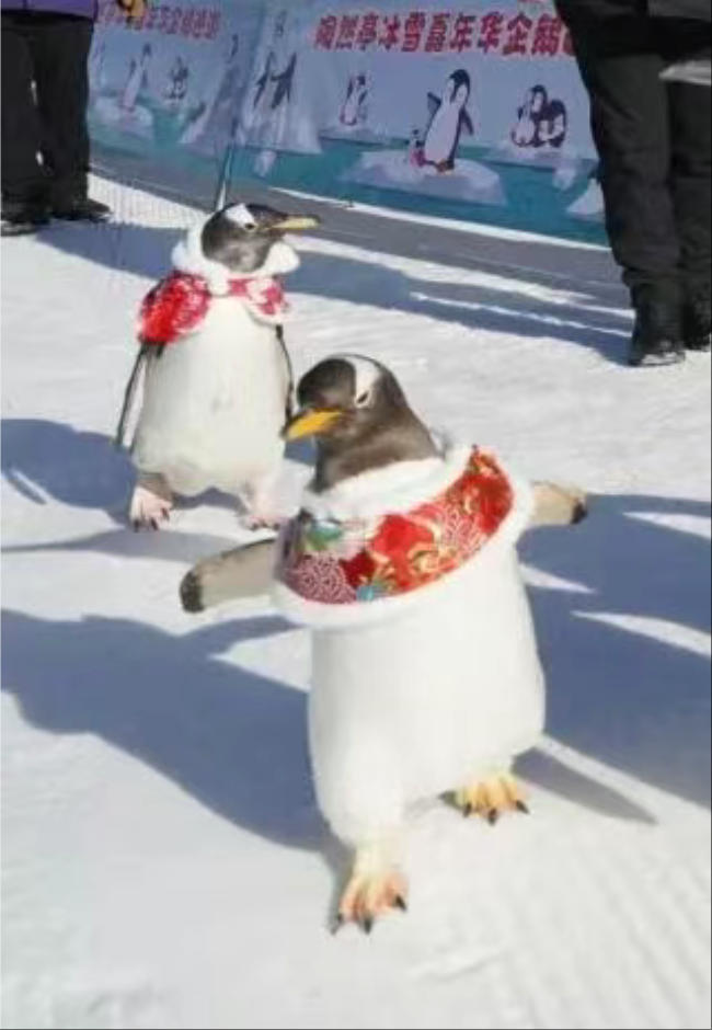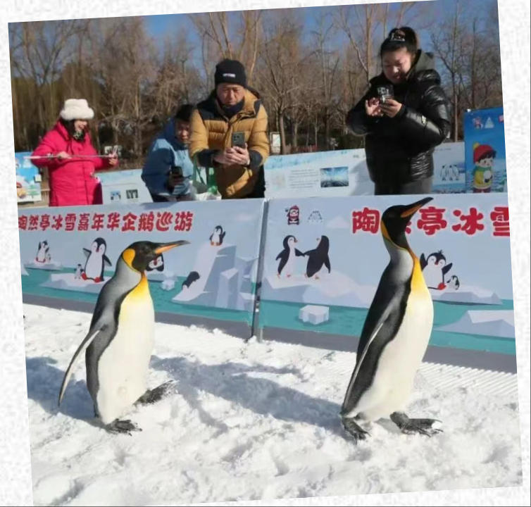 陶然亭公园冰雪嘉年华的企鹅巡游。图片来自陶然亭公园微信公众号