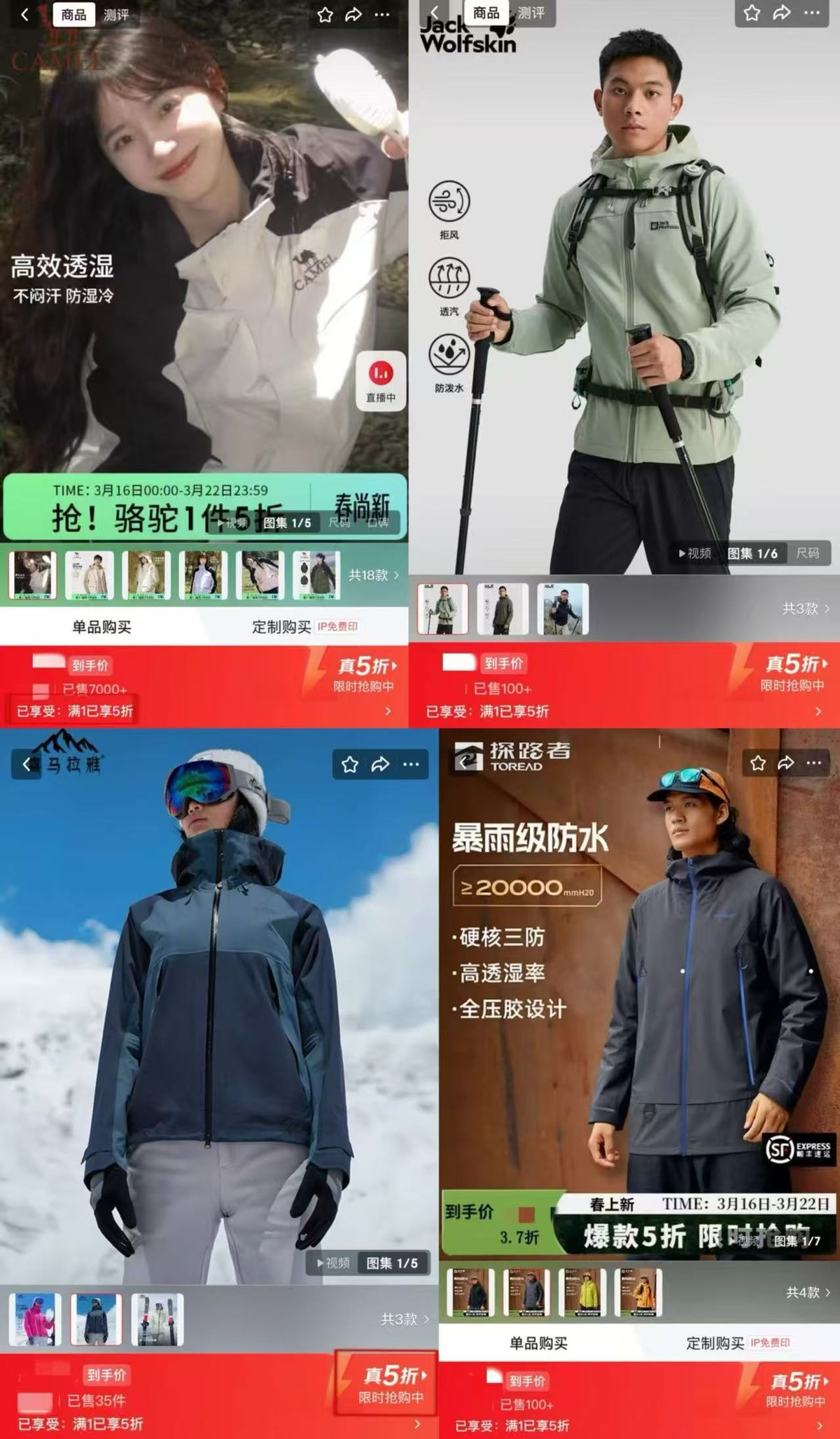 在京东APP,北面、狼爪、骆驼、喜马拉雅、哥伦比亚、伯希和等户外品牌的爆款冲锋衣、畅销速干衣等采用功能性面料的产品,相较日常售价明码标示“真5折”,千元级产品实际售价仅数百元。大家选购热情持续高涨,京东数据显示,“服装真5折”活动落地以来,拓路者、哥伦比亚、熊猫、思凯乐、MONTANE等多个头部品牌,均实现成交额同比增长超100%。