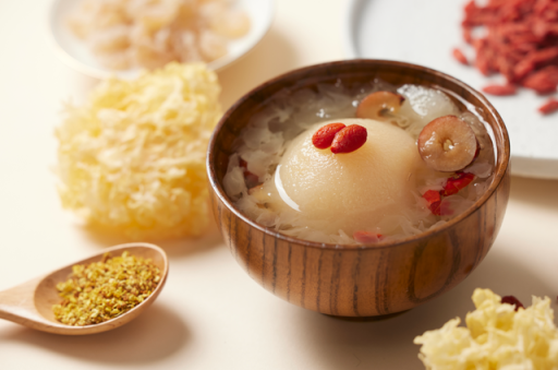 雪梨炖煮后美味翻倍,兼具清热润肺、化痰止咳的功效,适合口干咽干的秋燥季节。加入菊花同煮,更适合咳黄痰或无痰的风热犯肺者;加入银耳、百合同煮,则适合口鼻、咽喉、皮肤干燥的干咳、痰少而黏者。