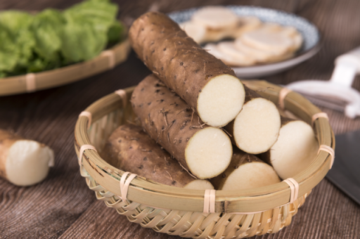 山药是薯蓣科植物薯蓣的根茎,作为主食绵软香甜,作为菜肴爽脆可口。山药富含淀粉,作为主食其升糖指数(GI值)为51,食用后血糖波动较平和。