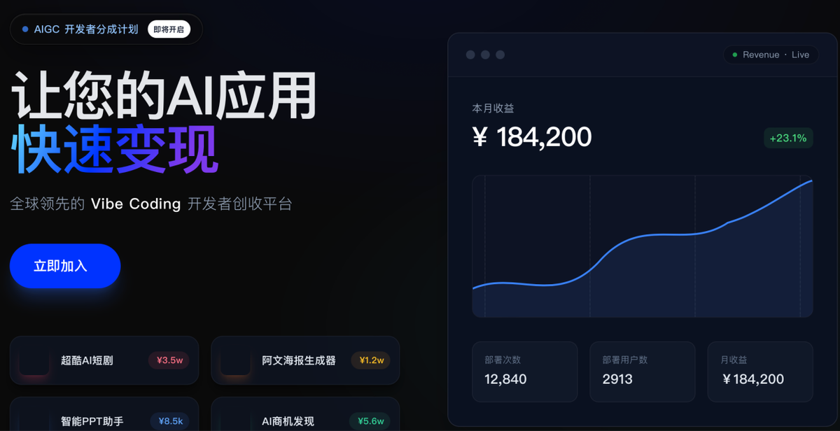 针对产业痛点,零克云构建了覆盖创作者与使用者的“双0门槛”解决方案。对Vibe Coding创作者而言,平台实现“部署0门槛”,智能部署引擎可无缝接入GitHub、Cursor、HuggingFace等主流开发平台,通过AI自动解析代码结构与环境依赖,实现分钟级上线与全自动化部署,解决快速迭代与工程化交付的核心矛盾。发布会现场演示的“一键发布”功能,能瞬时将项目转化为稳定可扩展的线上服务,平台同步提供资源调度、性能监控、安全维护等全生命周期托管运维,并建立透明收益分成机制,完成“创作-发布-变现”的商业闭环。