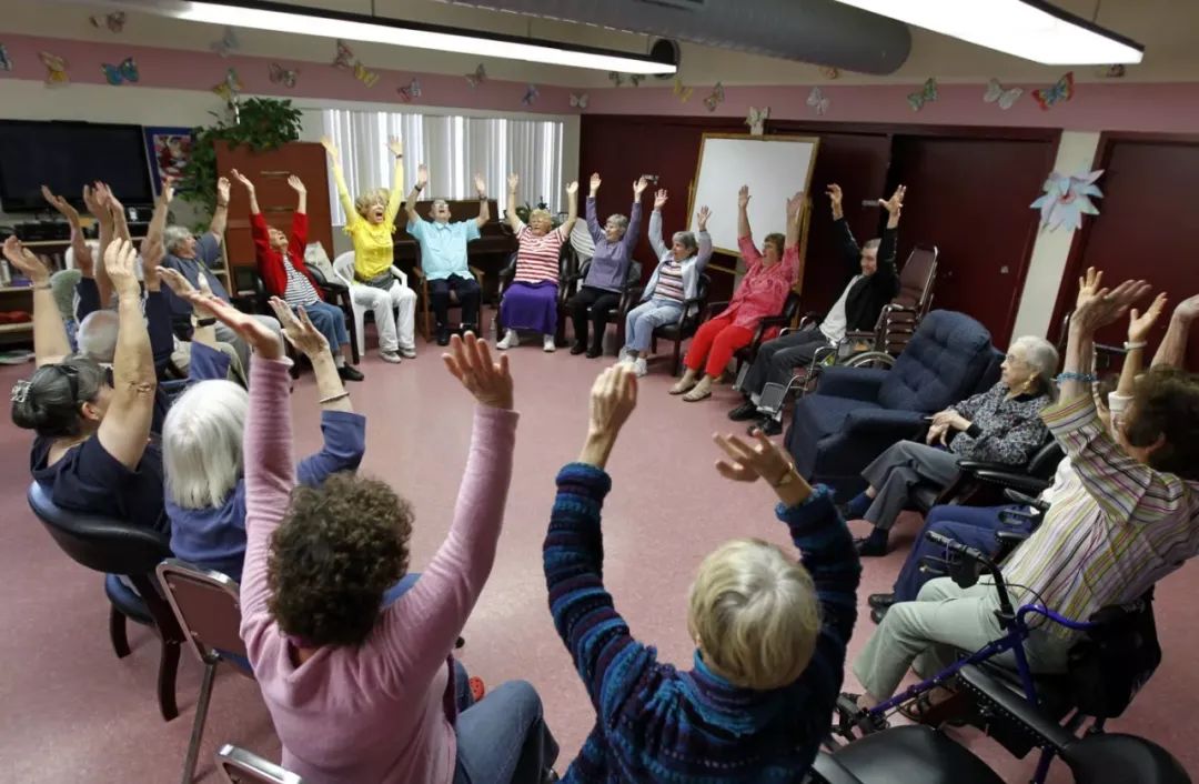 2010年11月17日,老年人在美国加州圣地亚哥参加笑声疗法课程(资料照片)。新华社/路透